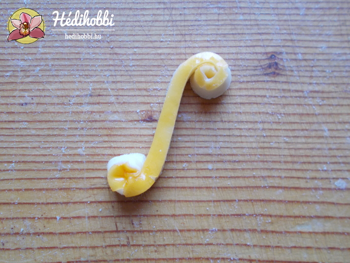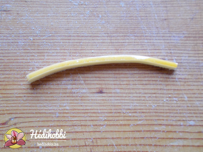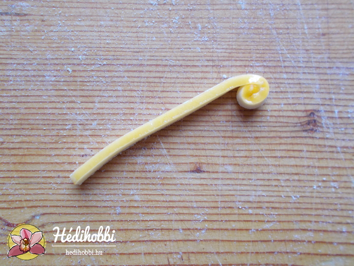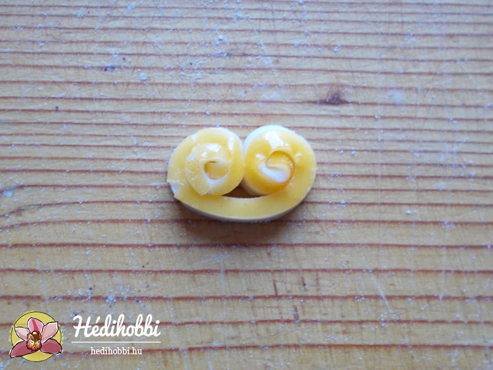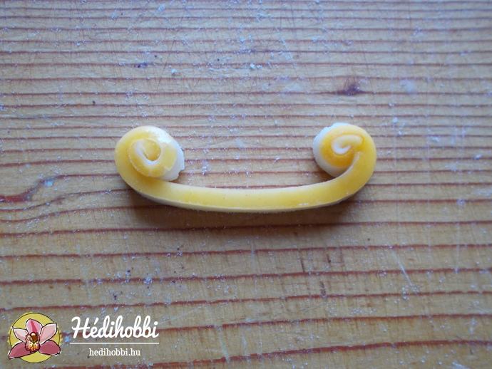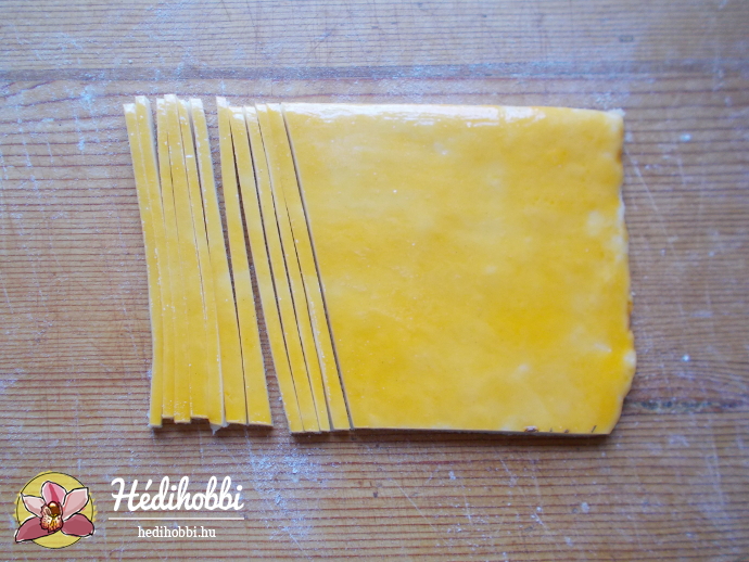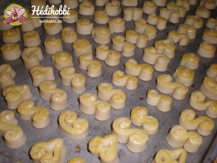 A sima tetejű tésztát hosszában kb. 10 cm-es csíkokra vágjuk, majd a csíkokat függőlegesen 3 mm-enként felszeleteljük. A kis csíkokból a mellékelt ábra szerint különböző formákat pödörgethetünk: csiga, perec, szív, „S” betű, tulipán. Pödrés után picit nyomjuk össze a formát, hogy sütés közben ne nyíljanak szét.